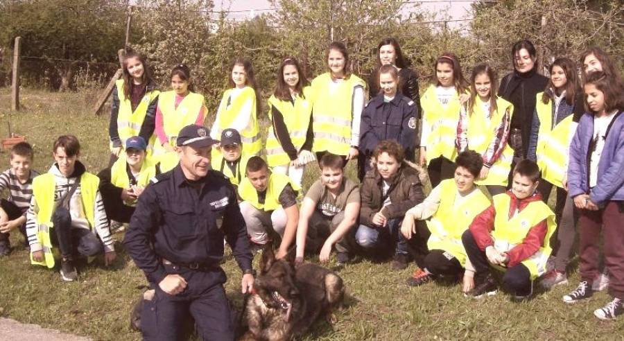 Още с пристигането си младите доброволци привлякоха вниманието на четириногите обитатели на питомника. Младши експерт Живко Василев - командир на отделение „Водачи на служебни кучета“ посрещна петокласниците и заедно с полицаите Даниел Кирилов и Спасимир Спасов им представиха различни пособия, ползвани за обучението, поддържане на формата и при работата на служебните кучета. Учениците се запознаха с работата на полицейските кучета, начините за дресирането им, процеса за придобиване на умения, както и че се обучават за различни специфични дейности, което ги определя по вид - постови, следови, за откриване на наркотици, за откриване на взривове и други. С голям интерес петокласниците наблюдаваха демонстративните изпълнения на служебните кучета Демо и Найк, които водени от мл. експерт Василев показаха послушание, преминаване на полуса с препятствия, елементи от обща дресировка - изпълнение на гласови и жестови команди, откриване на огнестрелно оръжие, задържане на нарушител. Със силно ръкопляскане младите доброволци награждаваха служебните кучета след всяка изпълненена задача. Без притеснение те опитаха да станат приятели с полицейските кучета и успяха да спечелят вниманието и радостта на служебно куче Нома. Приятното занятие беше запечатано в много снимки.