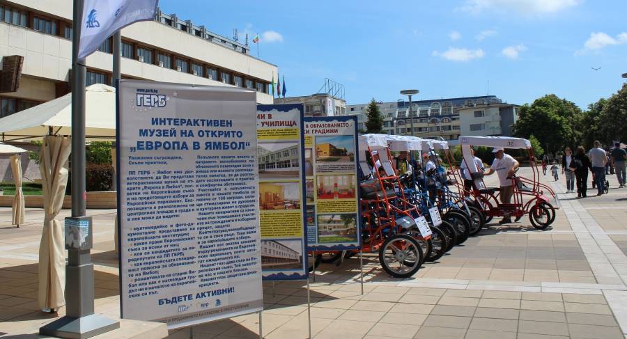 Интерактивният музей на открито „Европа в Ямбол“, посветен на Европейския съюз и на предстоящите избори за Европейски парламент, е основният акцент в предизборната кампания на ПП ГЕРБ Ямбол. Той е разположен на централния площад на ул. „Георги Раковски“ и ще остане на разположение на всички граждани, проявяващи интерес към него, до 24 май. В няколко шатри са подредени експозиции, включващи мултимедийно и фото-документално представяне на европейските институци, както и примери какво прави Европейският съюз за всеки от нас.