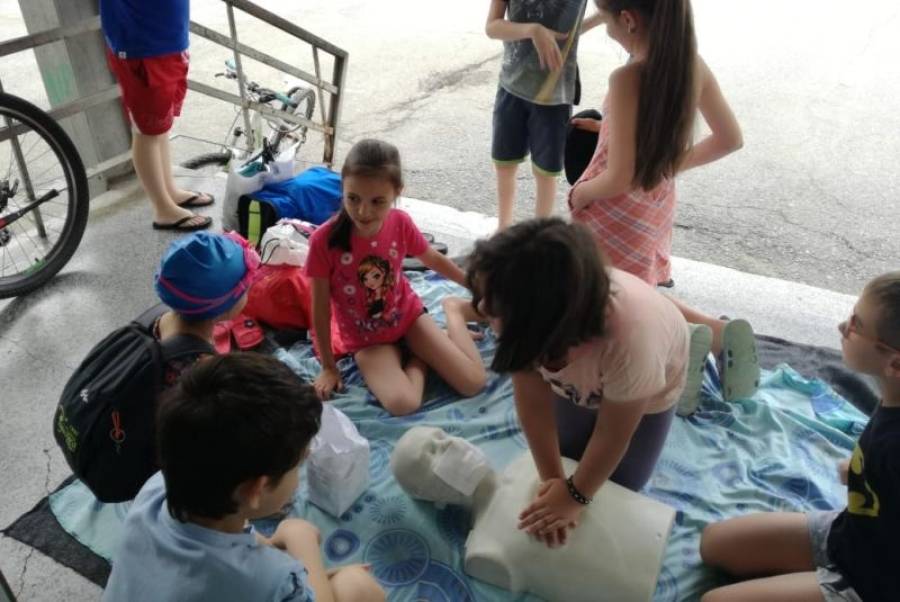 На 11 юли 2019г. се проведе първото от предвидените общо три занимания по усвояването на знания и елементарни способи за оказване на първа помощ на пострадал при воден инцидент. Децата и техни родители се запознаха с начини за измерване на основните жизнени показатели, подход и последователност на действията при пострадал, който е в безсъзнание, без дишане и сърдечна дейност, както и с техниката за поставяне в странично стабилно положение.