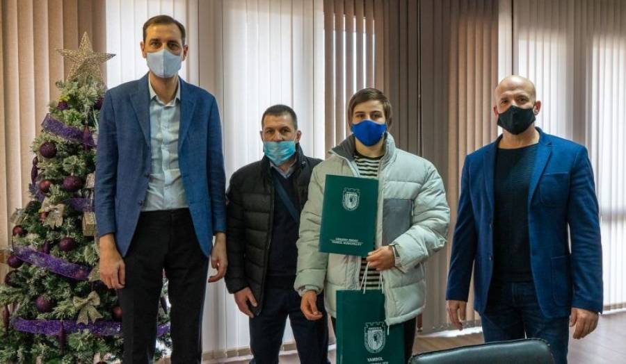 Кметът на Ямбол Валентин Ревански и неговият заместник Енчо Керязов се срещнаха със състезателката по борба Юлияна Янева, която спечели златен медал от Световната купа в Белград, Сърбия.