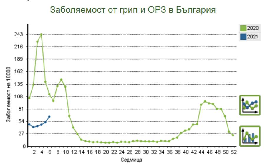 /60.99 на 10 хиляди/болни, Ямболска област е под средният показател за страната /64.32/ на болни от остри респираторни заболявания през миналата седмица. С двама в повече се е увеличил броят им в Ямболско.