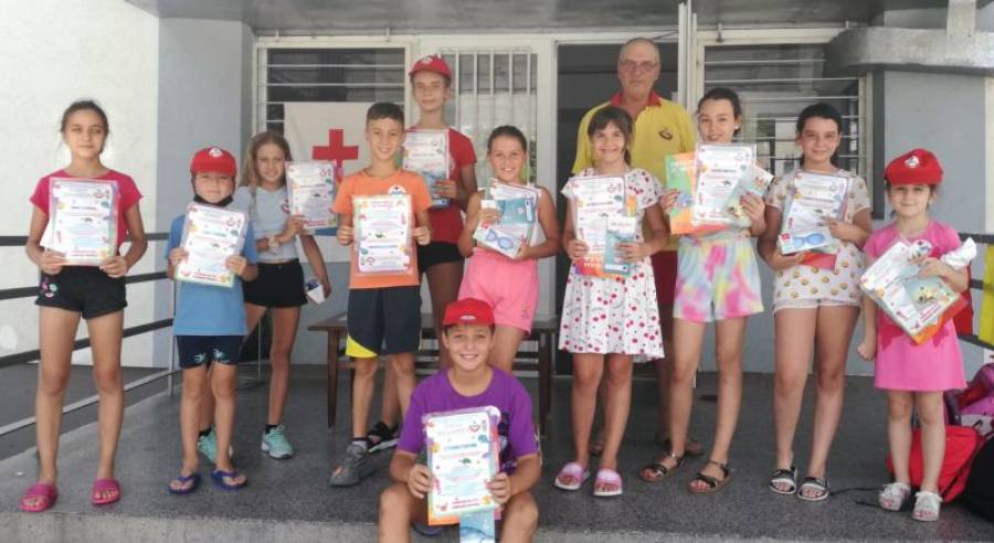 За своето старание всички деца получиха грамоти, стикери, образователни книжки „Приятели с водата“, брошури и сладки изкушения с логото на „Водноспасителната служба“ на БЧК.