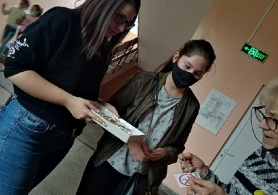 Доброволците изработиха информационни материали, съдържащи препоръки за спиране на тютюнопушенето под формата на цигари, които раздаваха на съучениците си.