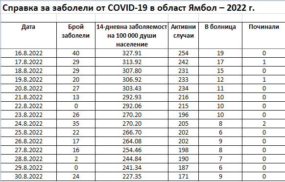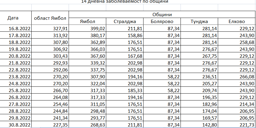Официална таблична информация на РЗИ