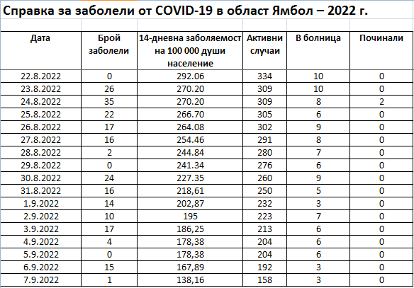 На 08.09.2022 г. мобилен екип на РЗИ-Ямбол за извършване на имунизации срещу COVID-19 и безплатно изследване за COVID-19 ще бъде: от 10:00 ч. в с.Скалица от 11:00ч. в с.Овчи кладенец