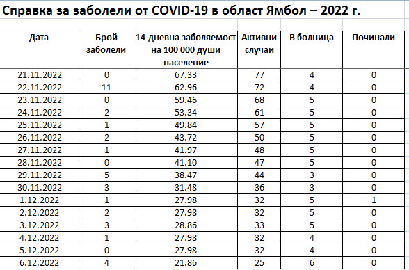 Един с такава диагноза е починал и през целия ноември. Общо взето заболеваемостта от К19 е ниска. В момента има 6-тима в болница..Вижте таблицата..