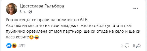 Дали него е имала предвид д-р Цветослава Гълъбова за следният си пост не знаем. Освен ако се пропознае!