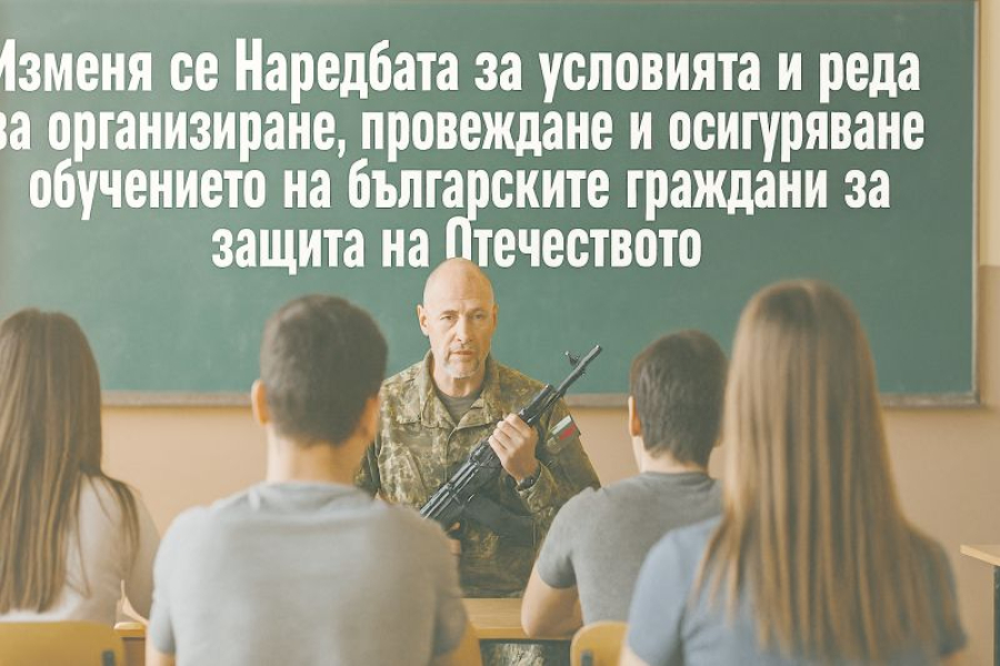 Изменя се Наредбата за условията и реда за организиране, провеждане и осигуряване обучението на българските граждани за защита на Отечеството
