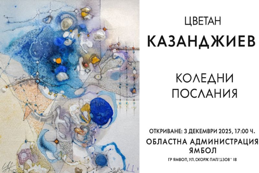 И тази година, по традиция продължаваща вече две десетилетия, Арт фоайето на Областна администрация Ямбол ще бъде домакин на изложба на художника Цветан Казанджиев озаглавена „Коледни послания“. Откриването на изложбата ще се проведе на 03.12.2025 година, от 17:00 часа, в Арт фоайето на Областна администрация Ямбол.