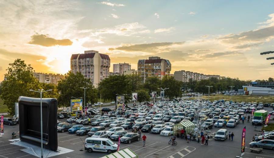 При огромен интерес премина прожекцията на първото автокино в Ямбол. Повече от 400 автомобила и десетки хора, дошли пеша, изпълниха до пълния му капацитет паркинга между магазините „Практикер“ и „Технополис“ .
