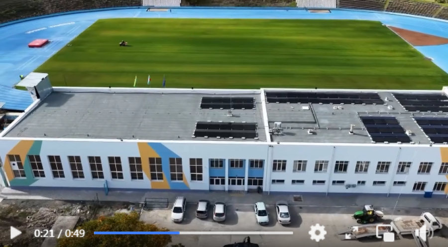 Сградата на градския стадион „Тунджа“ е с нов облик и е енергийно ефективна: поставена е нова топлоизолация, подменена е дограмата, изпълнена е нова фасада, внедрена е модерна климатична система и е монтирана фотоволтаична инсталация за собствено потребление.