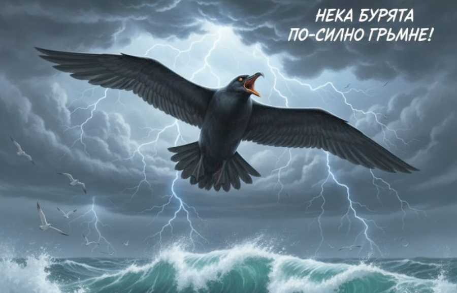 Туй е жаждата за буря! Мощен гняв, пламтяща страст и воля за победа чуват облаците във вика на тази птица.