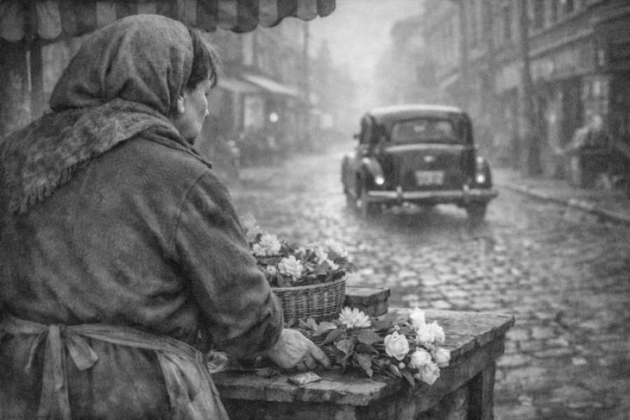 На „Кестеновата“ улица, в квартал, който отдавна беше изгубил навика да се променя, стоеше сергия за цветя. Първият път, когато мъжът спря, беше в понеделник сутрин. Колата — тъмносин седан, чист, но стар — се приближи до тротоара с онази тиха увереност на хора, които знаят точно къде отиват. Мъжът слезе. Беше висок, с прошарена коса и лице, което не се оплакваше, но и не криеше умората си. „Бели рози“, каза той. Гласът му беше спокоен, почти равен. Докато Мария подреждаше букета, той погледна към колата. На задната седалка седеше момиче — дванайсет, може би тринайсет — неподвижно, с ръце в скута, сякаш се опитваше да не пречи на собственото си съществуване.